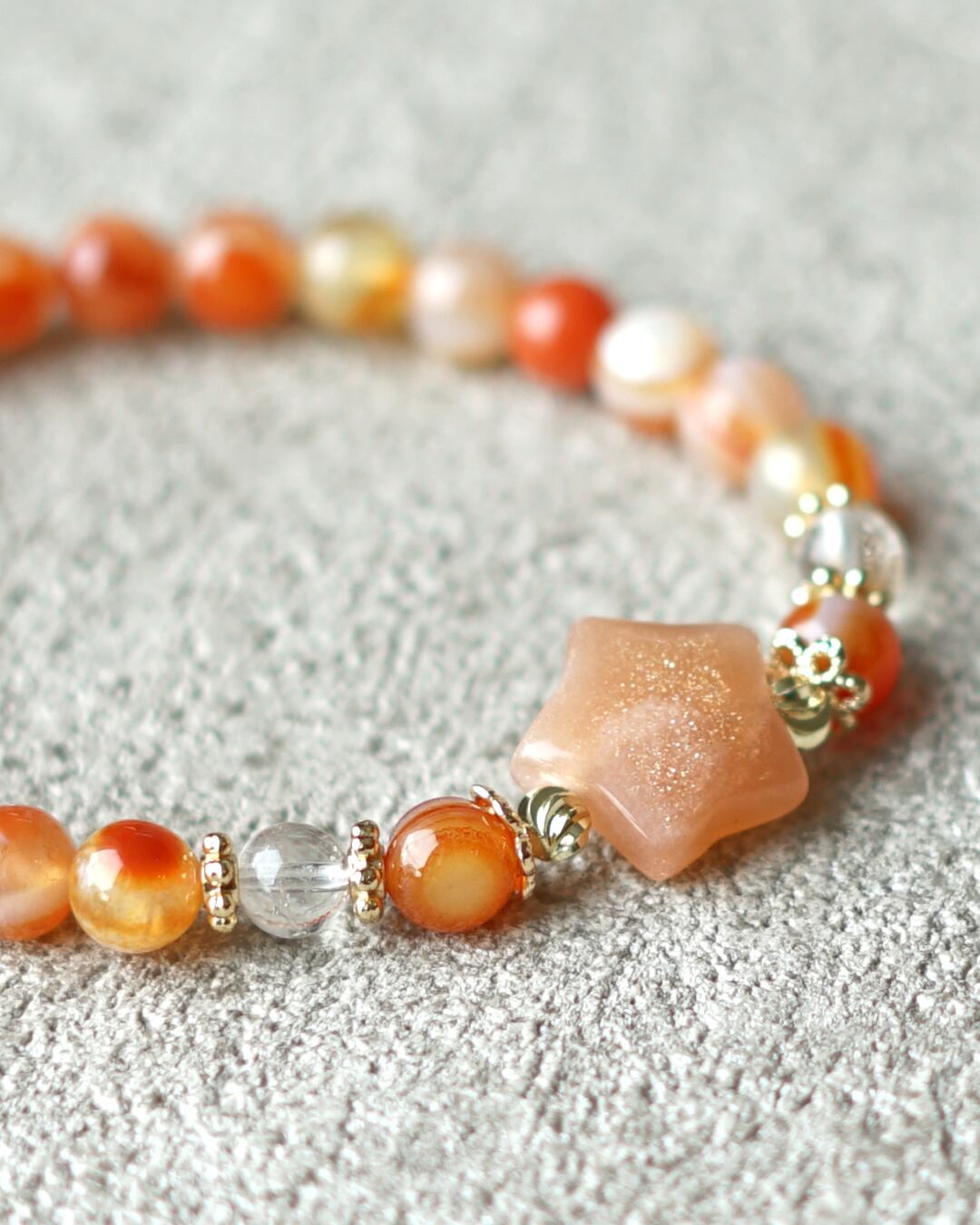オレンジムーンストーンの星とサードオニキスのブレスレット/天然石ブレスレット